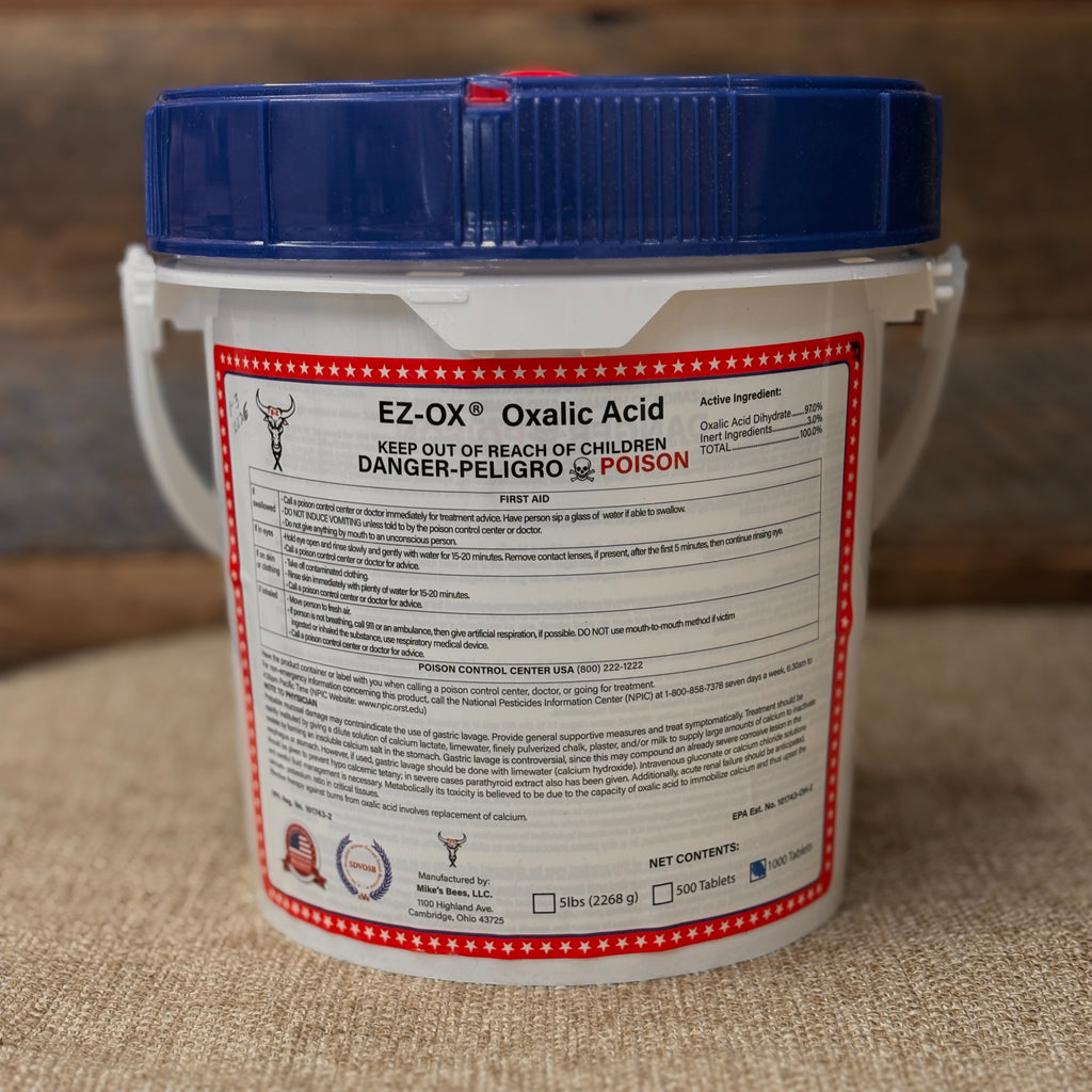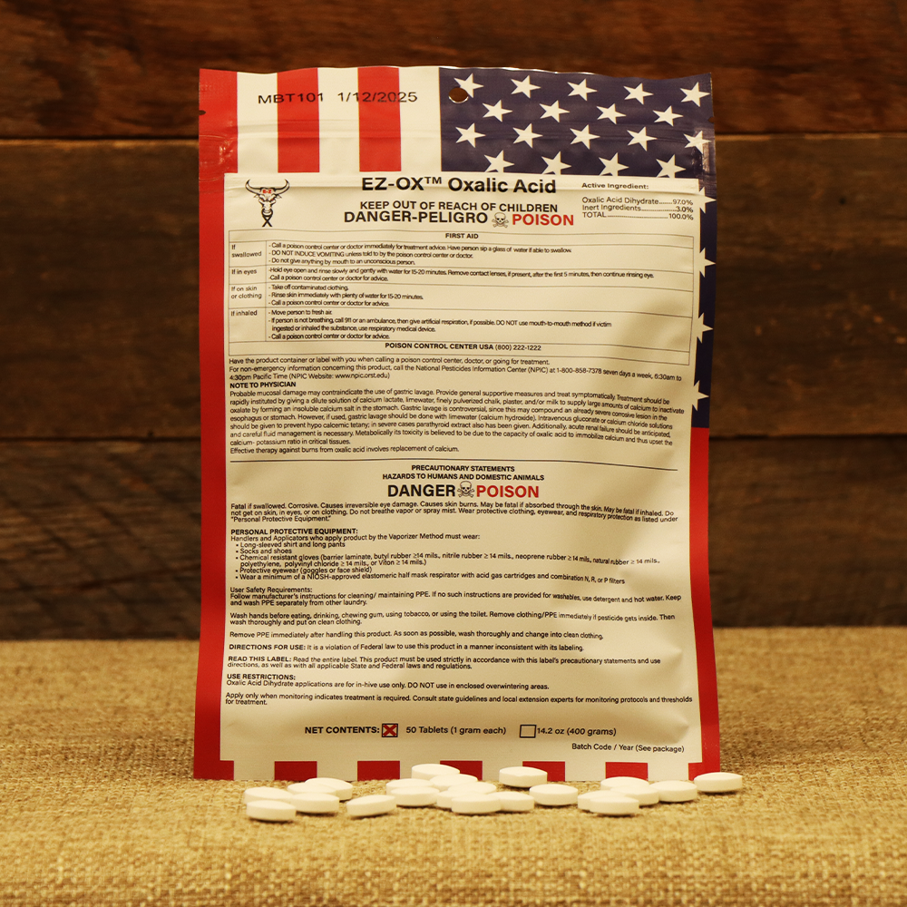 Mike’s Bees LLC is the only U.S. based company to register Oxalic Acid tablets with the E.P.A. as an approved treatment for Varroa mite control on honeybees. Their easy-to-use EZ-OX Tablets are the first product of their kind on the market with each tablet containing a full 1 gram of oxalic acid.