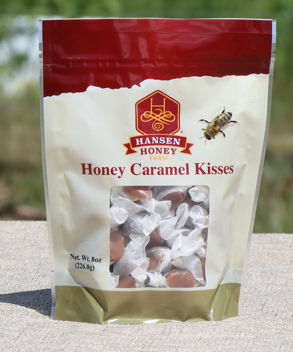 Our Honey Caramel Kisses are made by a small family owned candy company that uses our Pure Wisconsin Honey to make the Caramel. The Caramels are individually wrapped and sealed in a resealable pouch. Net Wt. 8 oz. (226.8g)