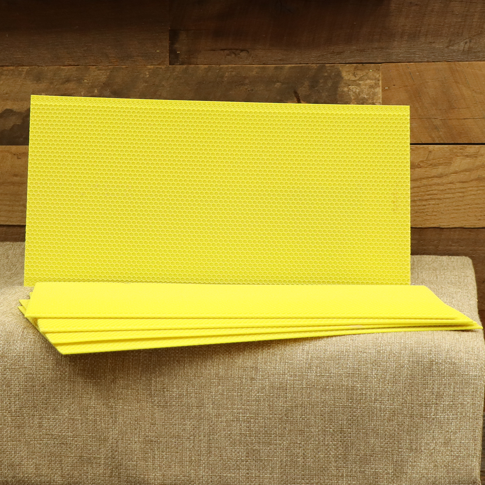 Hansen's Premium Foundation is the perfect choice for your brood box or honey super. A plastic cell pattern that feels natural to the bees is coated with either a single or double layer of 100% pure beeswax from US beekeepers, making it familiar to your bees and easy for you to install, simply snapping into your frames. Hansen's Premium Foundation offers you multiple choices for maximum customization and comfort. Always offered in either yellow or black, you also have your choice of a single or double coating of wax.
