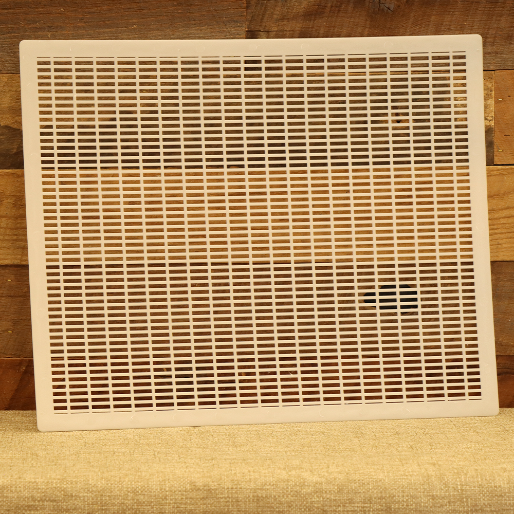 This excluder is all plastic with properly sized openings for the worker bees to travel through, while keeping your queen out of your honey supers. Flexible and durable. Easy to clean, corrosion proof.