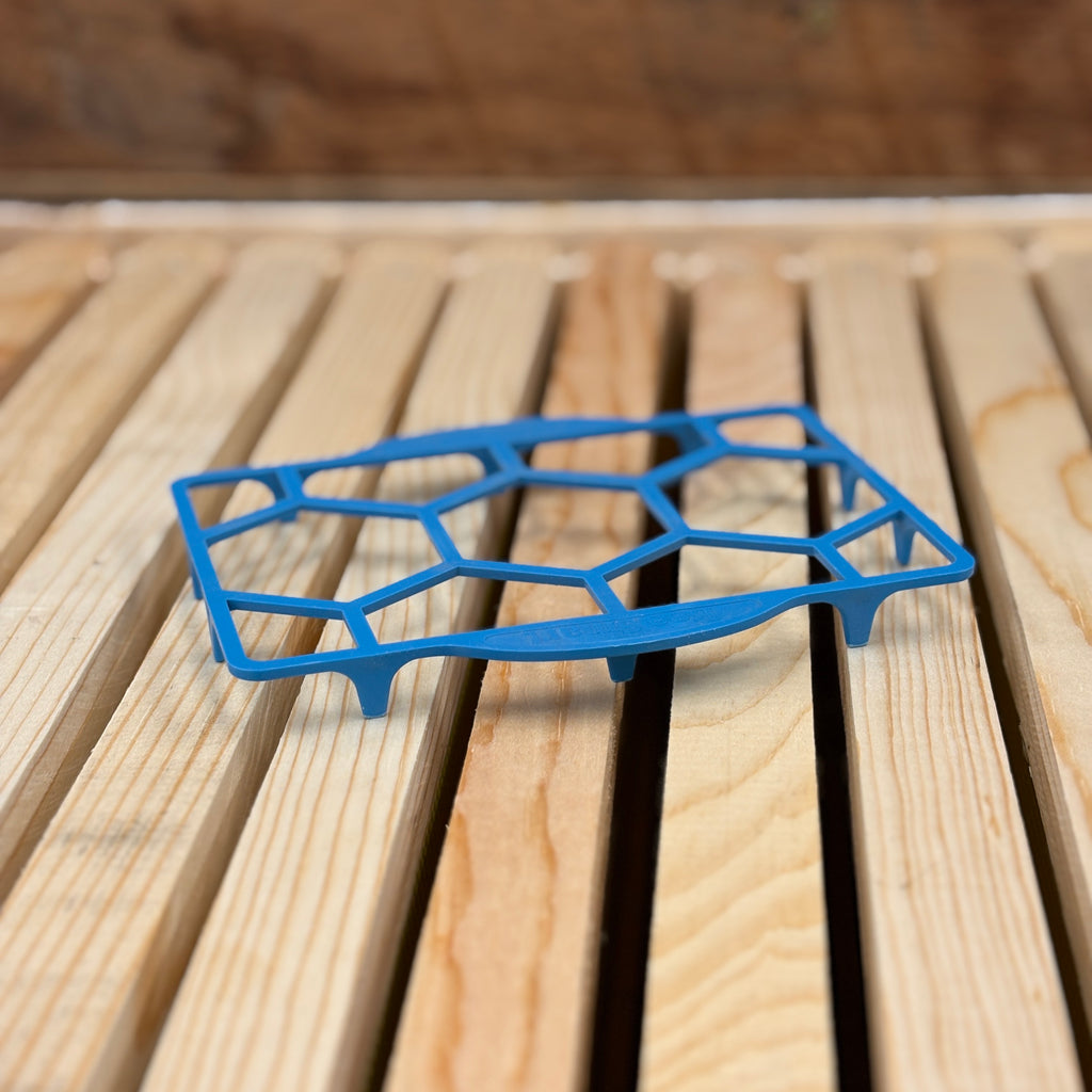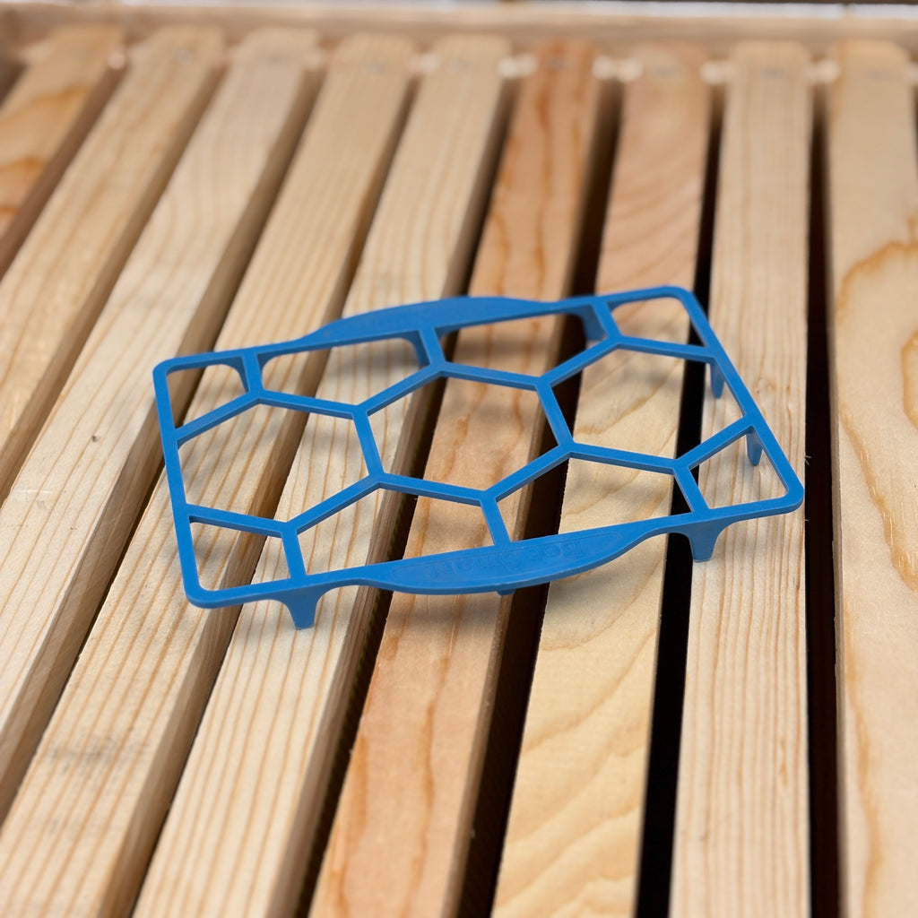 Discover the ultimate way to deal with small hive beetles when feeding pollen patties! The Trivet holds up to ½ of a pollen patty on its raised grid, allowing the bees to patrol both sides of the patty to prevent small hive beetles from finding a protected place to lay their eggs. Stop the reproduction of small hive beetles and prevent the damage!
